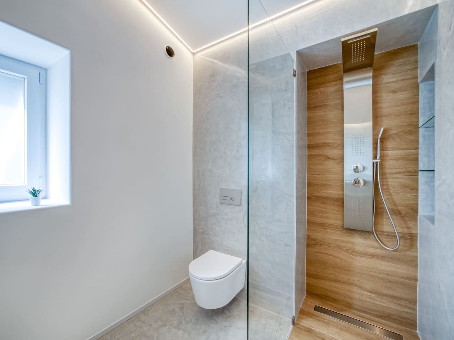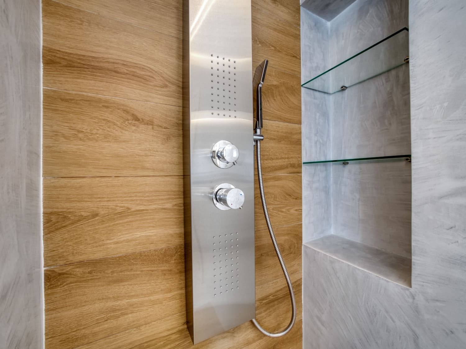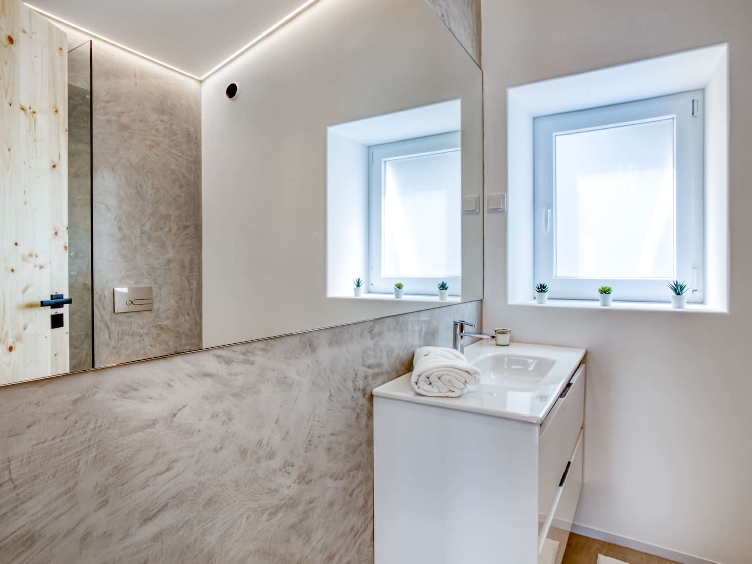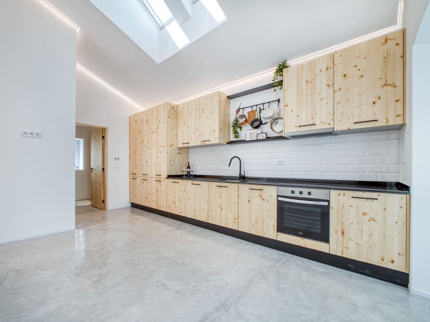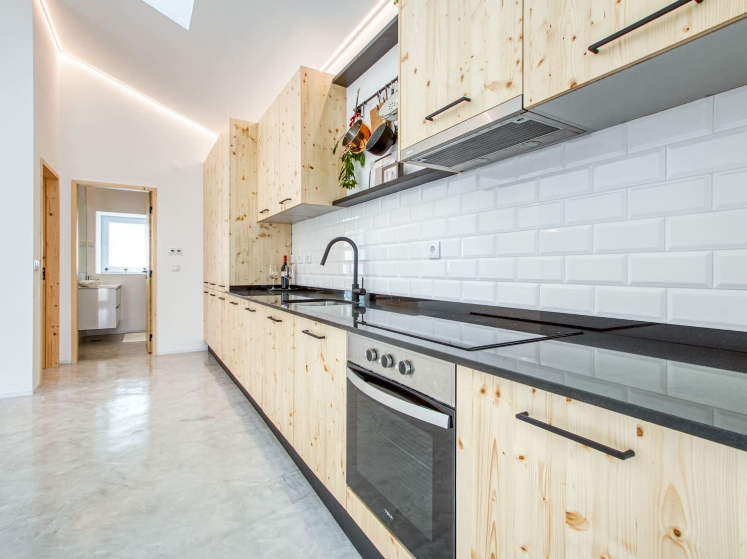 A zona privada foi reorganizada, resultando num quarto com instalação sanitária privativa e áreas de arrumação integradas. A madeira assume um papel central no conceito do projeto, funcionando como elemento condutor da linguagem estética e contribuindo para uma atmosfera acolhedora, equilibrando o carácter tradicional da construção com uma abordagem contemporânea.