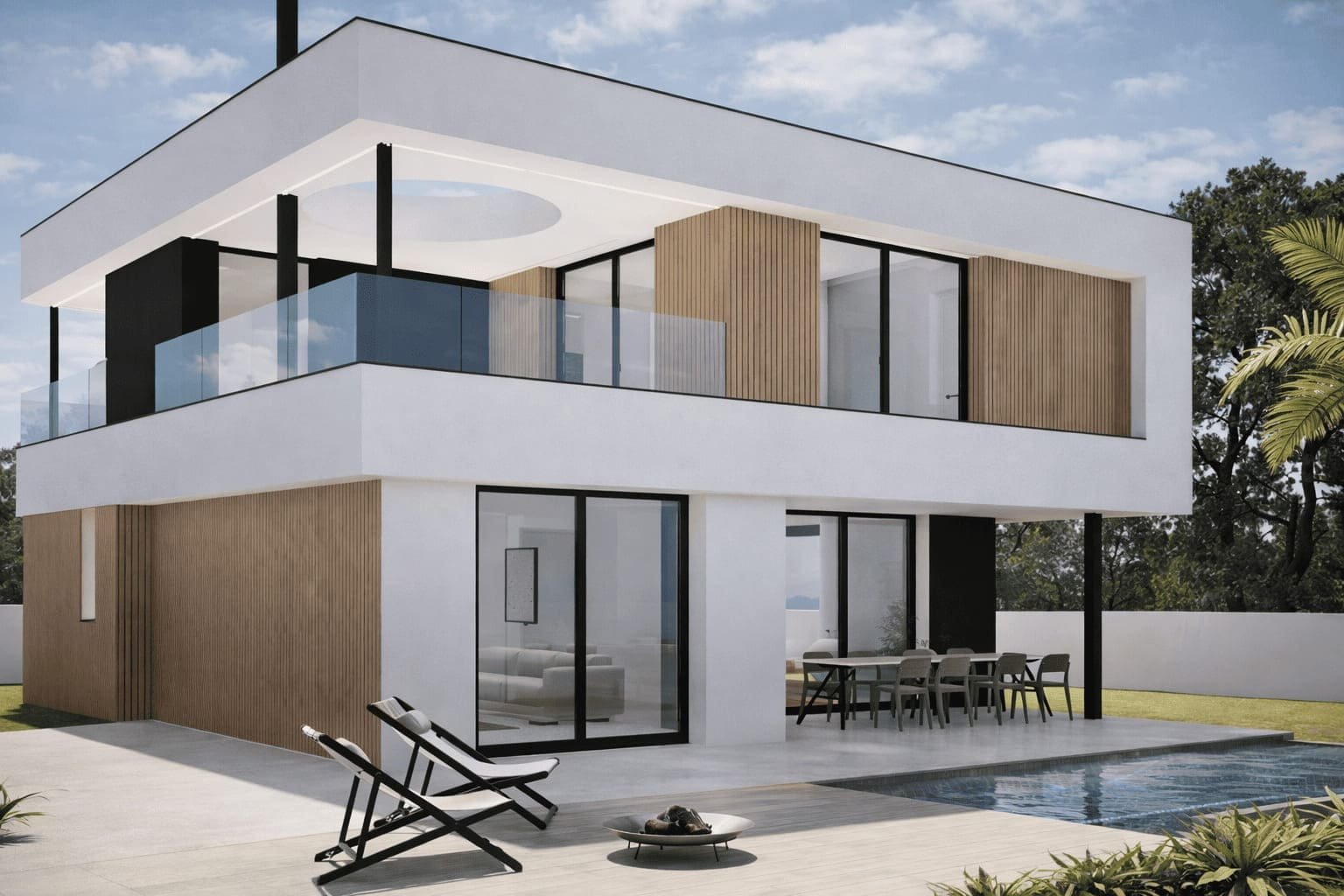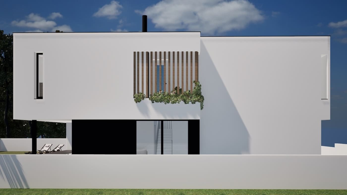 Tendo em conta as condicionantes do lote, a organização interna procura otimizar a exposição solar dos espaços, aliada à funcionalidade inerente a cada tipo de espaço, permitindo também a fruição das melhores vistas de cada quadrante.